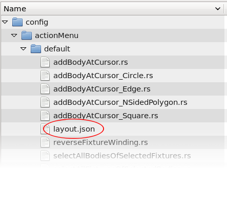 To construct the action menu, R.U.B.E looks for the file 'layout.json' in all subfolders of the