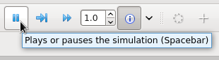 The simulation can be paused by using the Pause/Play button on the toolbar or the spacebar.