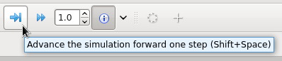 While the simulation is paused, you can run one simulation step at a time by