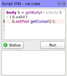 script which attempts to find a body called 'carBody' and move it to the cursor position.